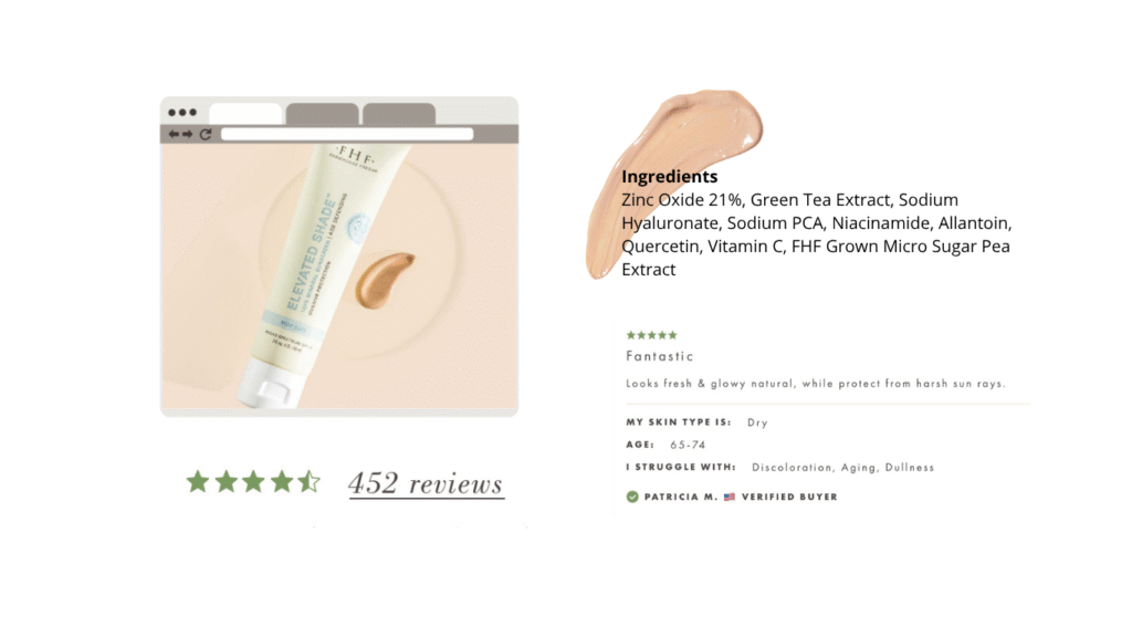 Packed with powerful antioxidants from micro dwarf gray sugar pea extract grown on our farm. Plus, skin-quenching hyaluronic acid provides you with all-day, smoothing hydration (perfect for sensitive skin types!).