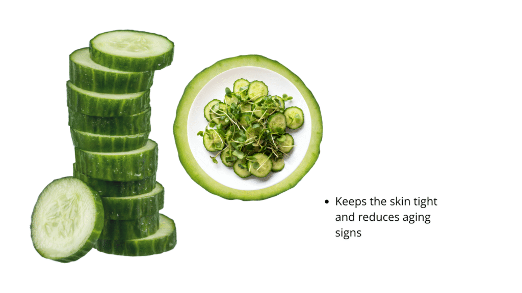 Cucumber microgreens are rich in mineral content, they benefit the body and skin. Potassium, iron, magnesium, and zinc are found in large quantities. These minerals help skin feel firm and tight, helping by slowing down the visible signs of aging and giving skin a youthful look.